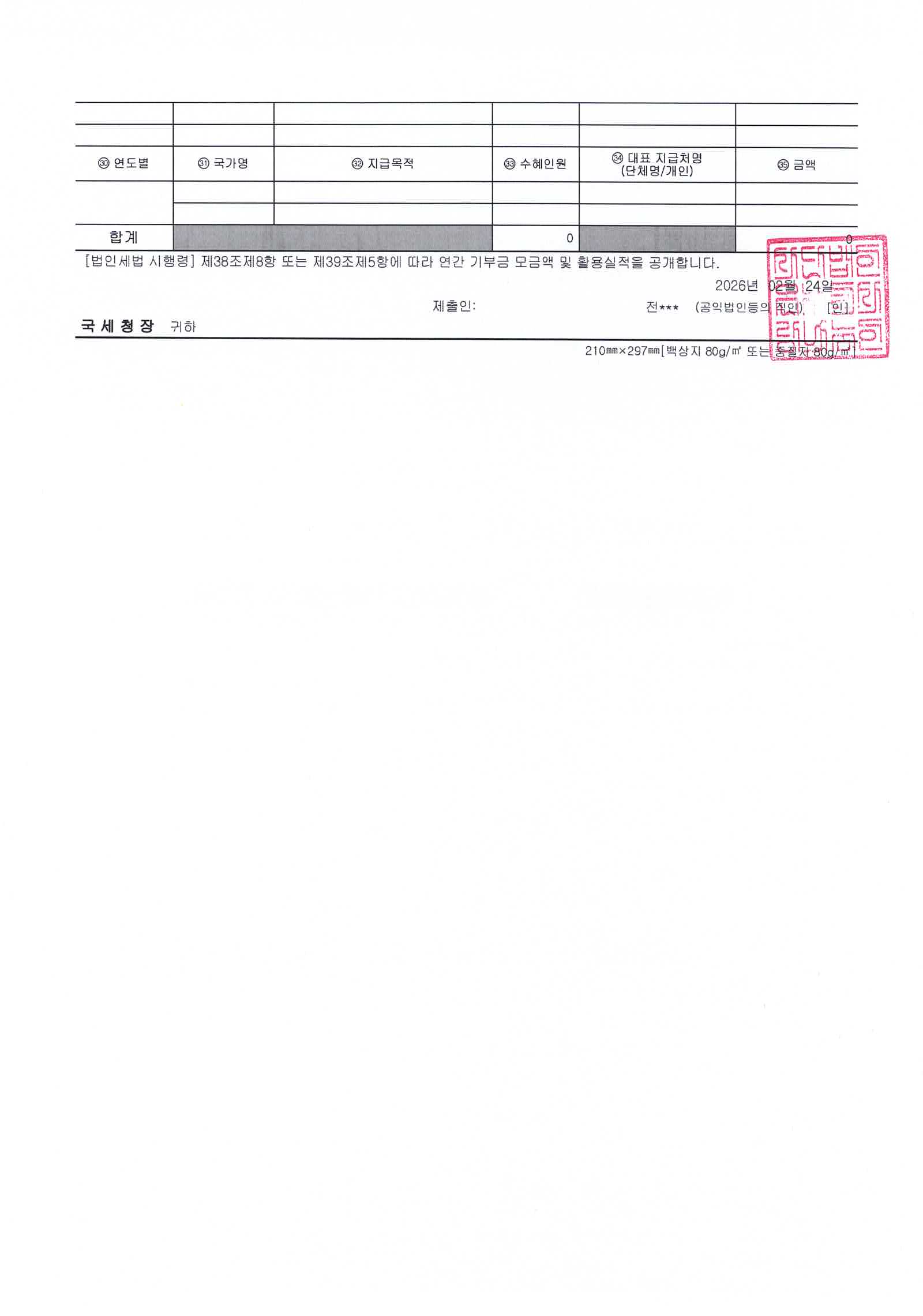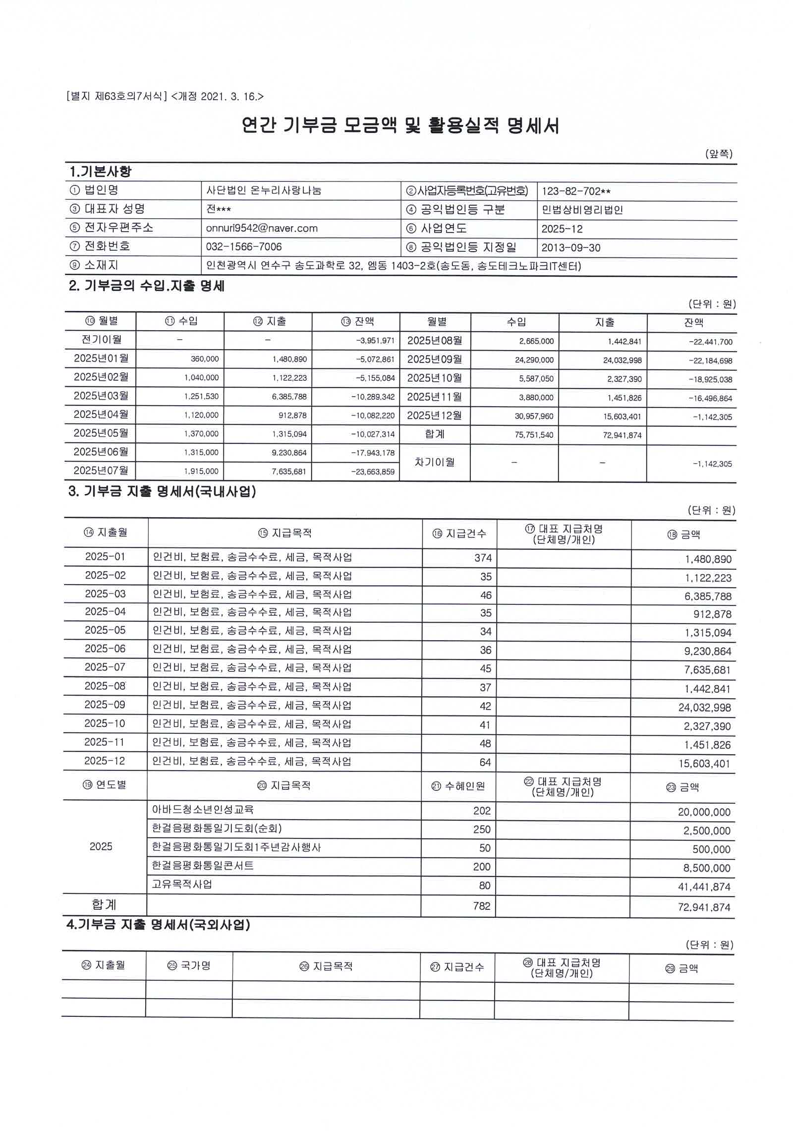 2025년도 기부금 모금액 및 활용실적서